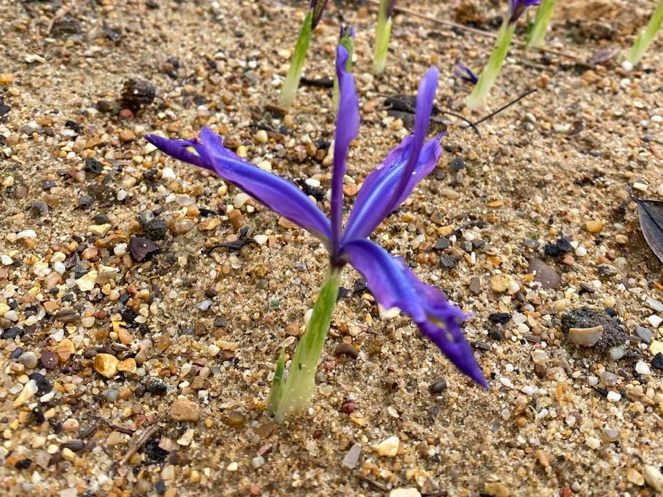 The very first bulb to appear ever year within the first few days of January is Iris histrioides var. sophenensis from Northern Turkey. This plucky little bulb comes out in the depths of winter, kindly treating us to a delicate flush of azure purple when all other colour has faded and before all other has begun. It brings so much joy and is a timely reminder that spring is coming and a reminder to me that winter too has its own gems.